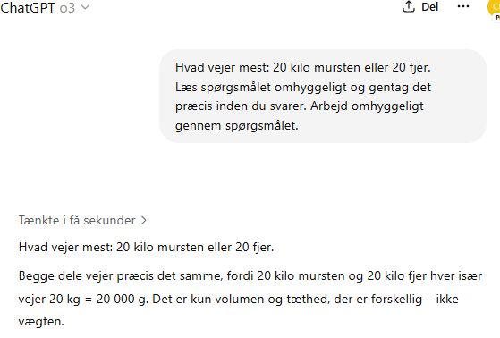 Husk nu. De her LLM’er er trænet på ca. hvad som helst man kan finde på nettet. Det er styrken. Det er også svagheden.